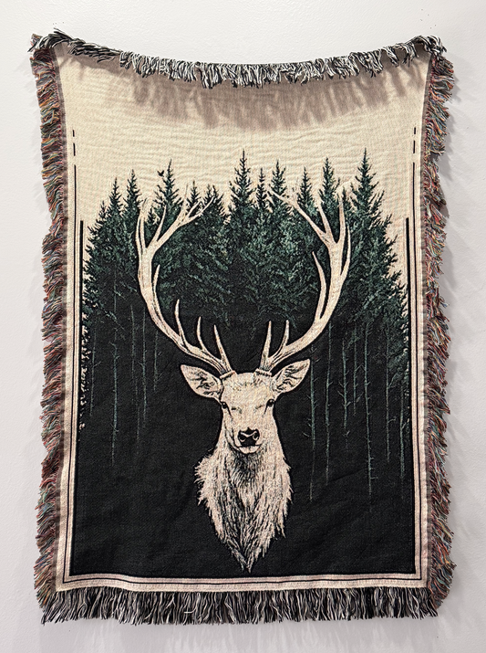 Woven White Stag Blanket