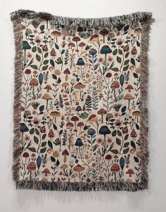 Woven Whimsical Mushroom Blanket