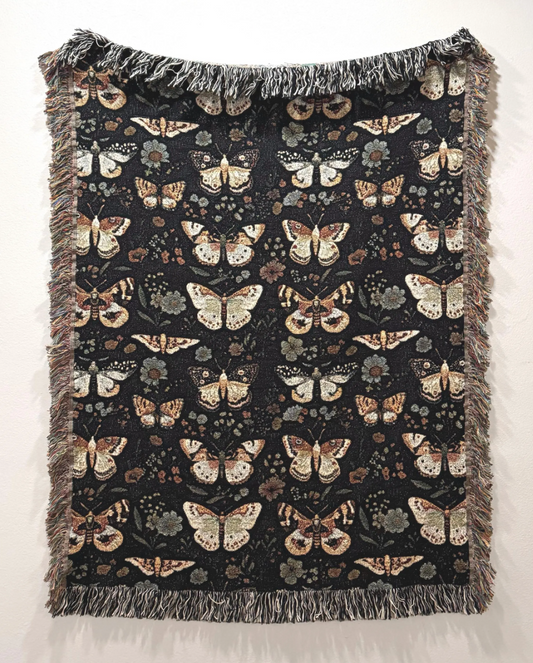 Vintage Dark Moth Woven Blanket